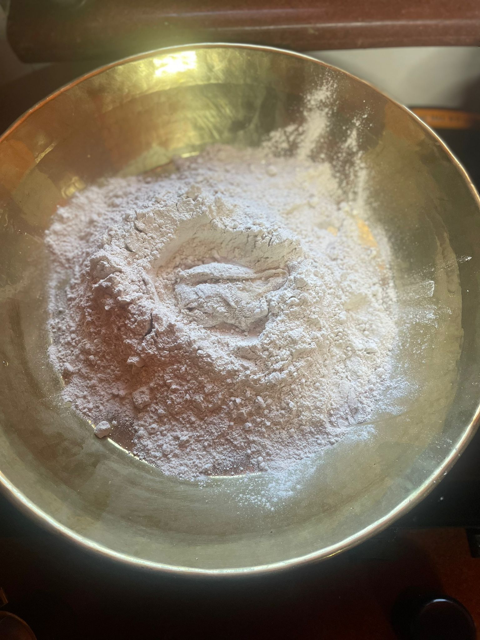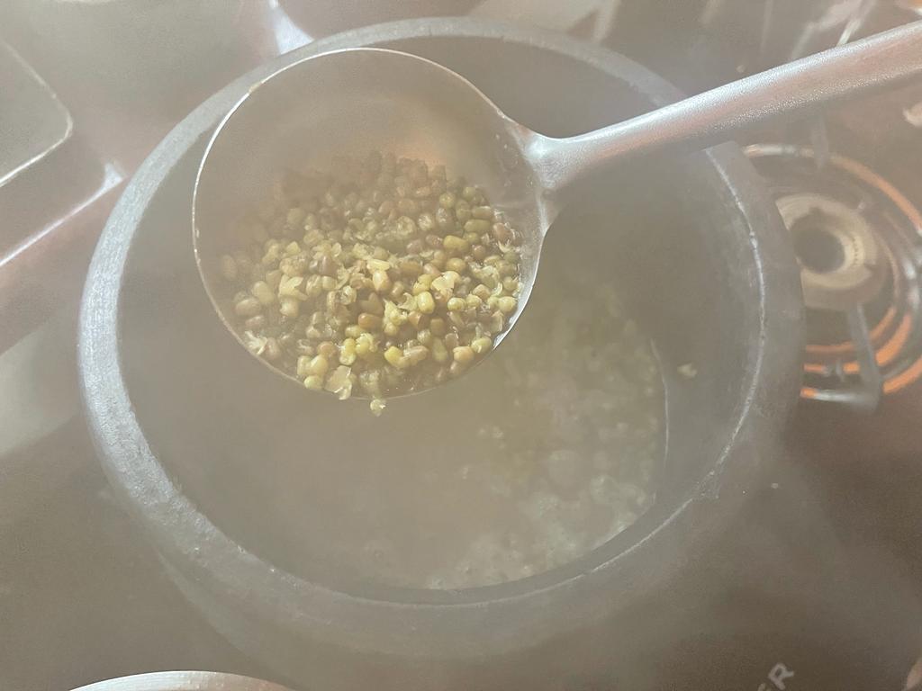 | 300 gm gur (jagarry) | Step 2. add the gur to the iron vessel and heat with water to allow it to melt on medium heat, continuously stirring about 5-6 minutes, until the jaggery's frothing will disappear. |
