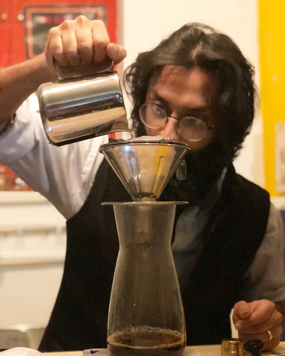 Dhanesh Sharma preparing a crafted cup of clear coffee